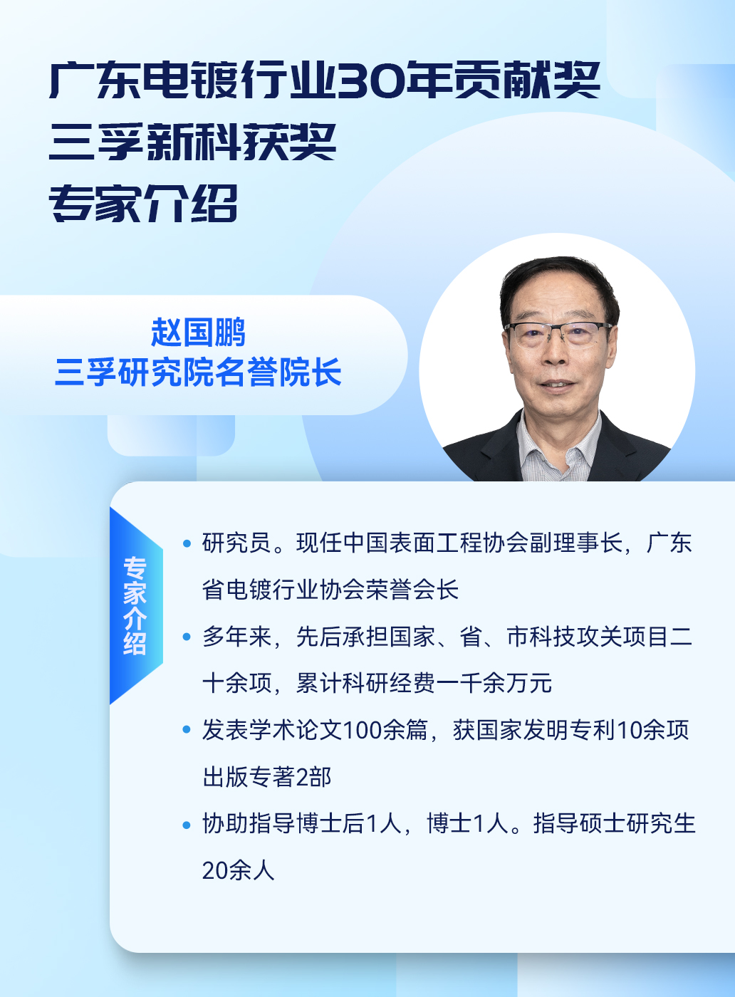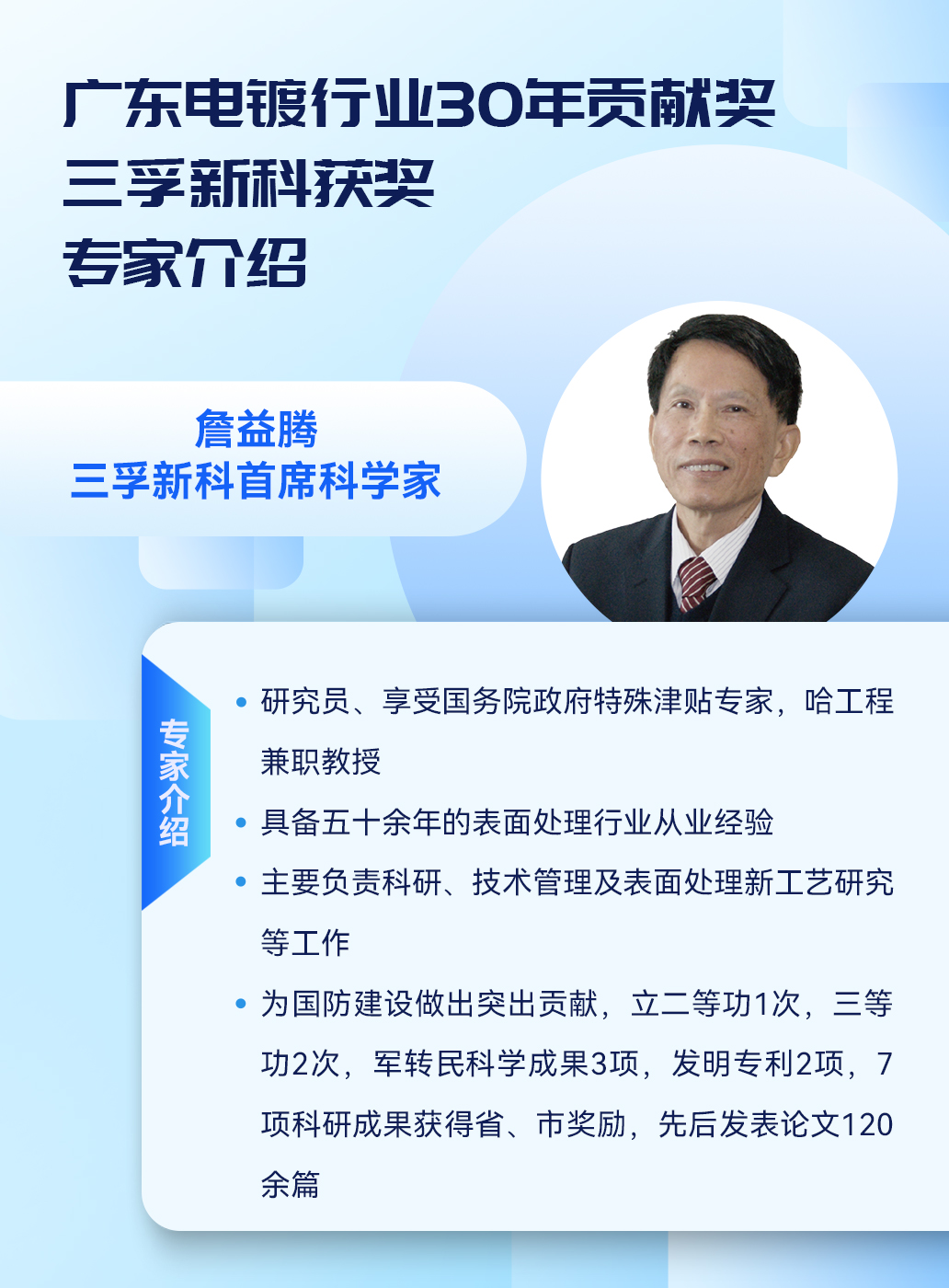 三孚研究院首席科学家詹益腾、名誉院长赵国鹏荣获“广东电镀行业30年贡献奖”。