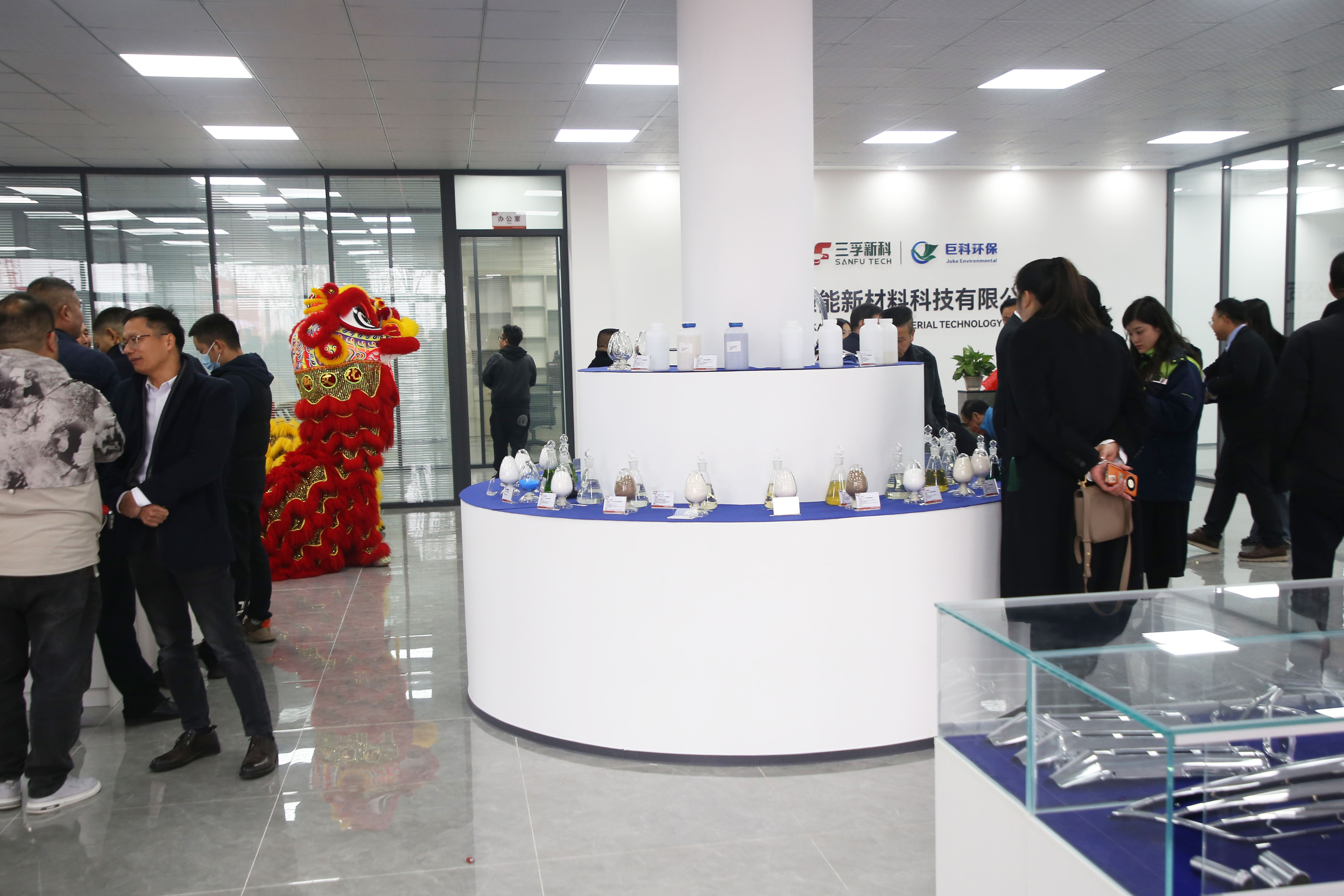 伴随着阵阵礼炮声,三孚新科总裁李勇、三孚新科产品平台事业部总经理蔡小星、巨科环保总经理阳浩、慷能新科总经理廖友贵共同为慷能新科开业剪彩,宣示了重庆慷能新材料科技有限公司正式开业,也预示着慷能新科盛大起航,开业大吉!