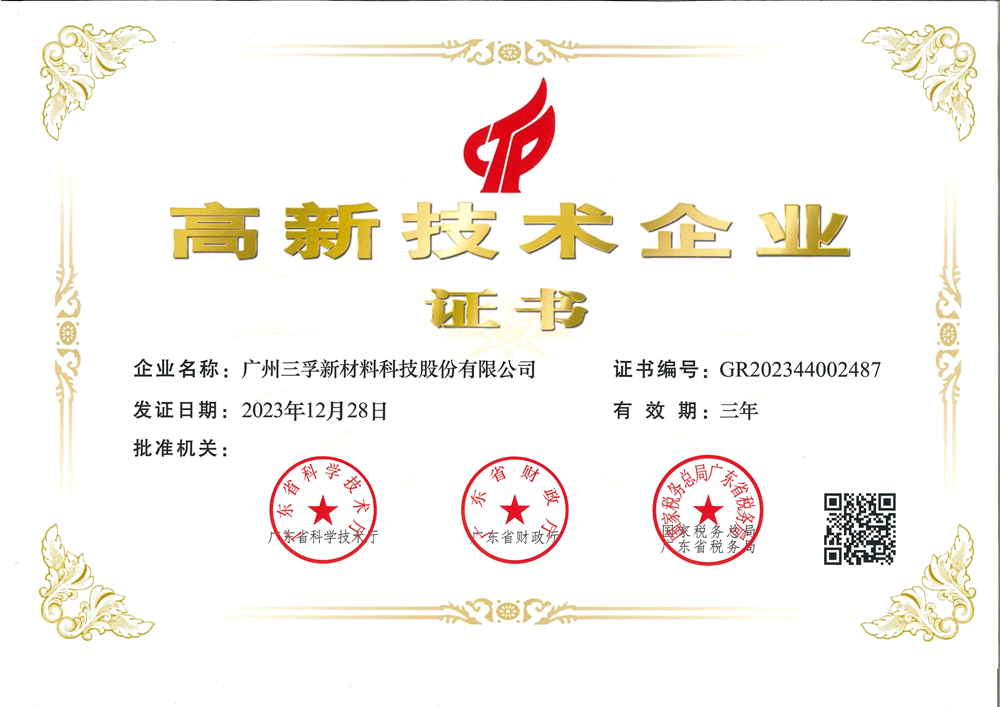 | 23 | SF-水溶性氯化钾镀锌添加剂获得2020年广东省高新技术产品认定 | 广东省高新技术企业协会 | 2021年4月 |